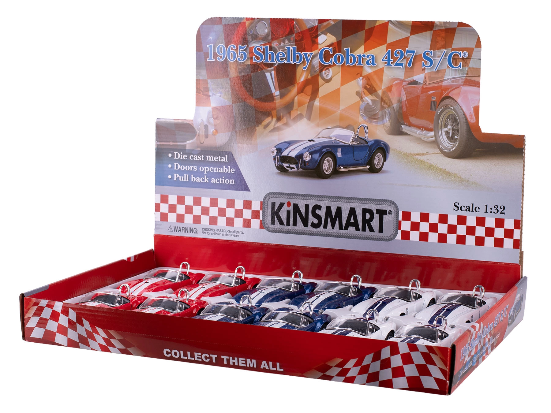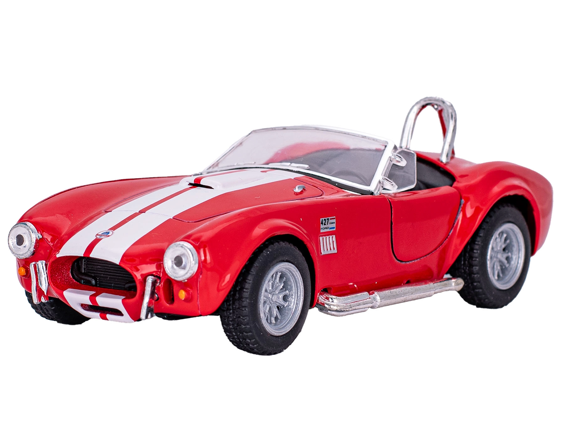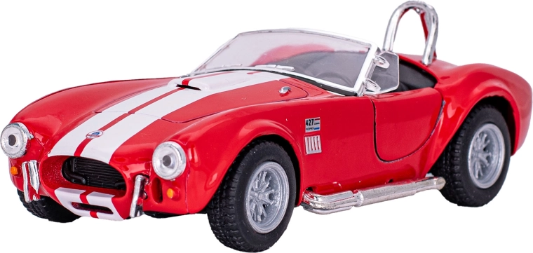 Podrobno izdelan kovinski model legendarnega vozila SHELBY COBRA 427 (1965) v merilu 1:32 bo navdušil zbiratelje in otroke. Ponuja odpirajoča se vrata, vzvratni pull-back pogon ter vzdržljivo kombinacijo kovine in plastike. Na voljo v treh barvah – bela, modra, rdeča. Primerno za otroke od 3. leta dalje.