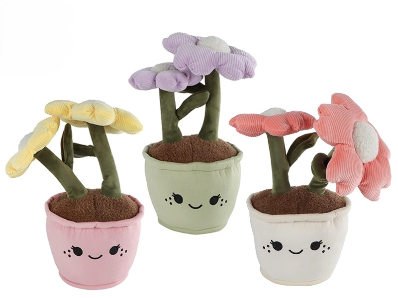 Ljubka plišasta sobna rastlina višine 43 cm je idealna kot dekoracija za notranje prostore in kot varna igrača za otroke od rojstva (0+). Mehki plišasti material prijetno poboža na dotik, tri barvne različice – rumena, vijolična in rožnata – pa omogočajo lahko usklajevanje z vašim prostorom.