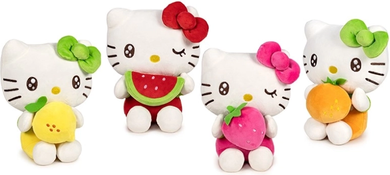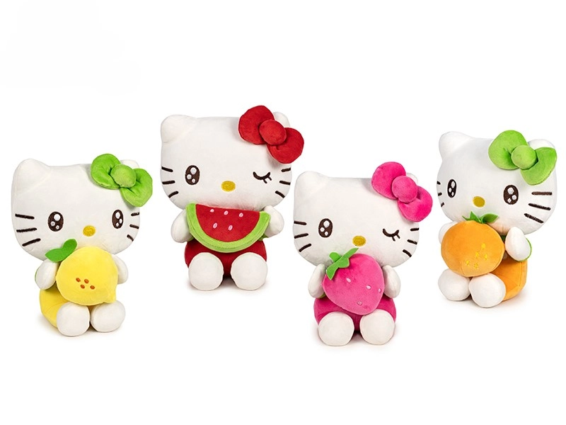 Ljubka plišasta igrača Hello Kitty v sedečem položaju razveseli otroke že od rojstva. Mehak material, kompaktna višina 16 cm in izbor 4 sadnih različic (limona, lubenica, pomaranča, jagoda) jo delajo idealno darilo in spremljevalko doma in na poti.