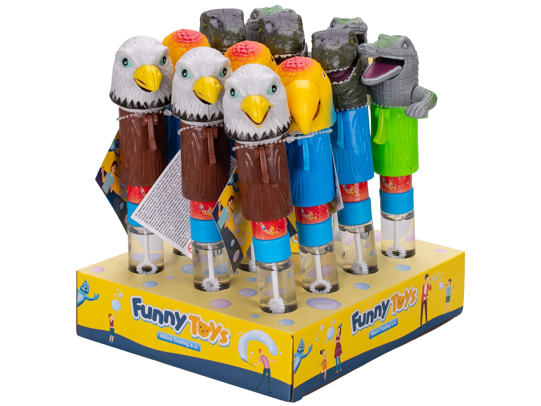 - Interaktivna zabava – odpiranje ust/kljuna med pihanjem mehurčkov.
