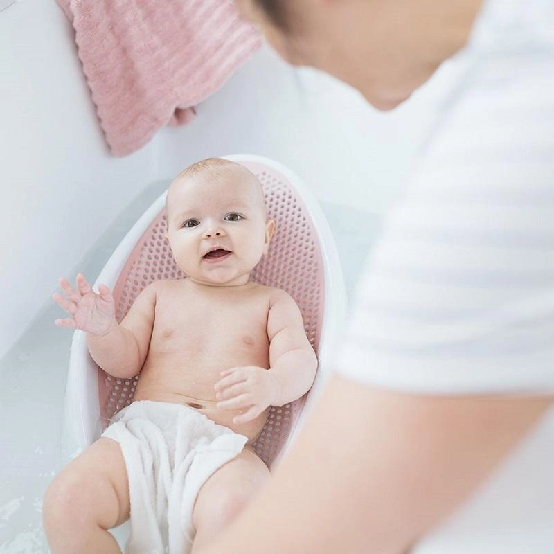 Ležalnik za kopanje ANGELCARE Light Pink je zasnovan tako, da dojenčku nudi varno oporo, staršem pa bolj proste roke med kopanjem. Ergonomski naklon ohranja glavico nad vodno gladino, medtem ko je nežna mrežica Soft-Touch prijazna do občutljive kože in omogoča kroženje tople vode za večje udobje.
