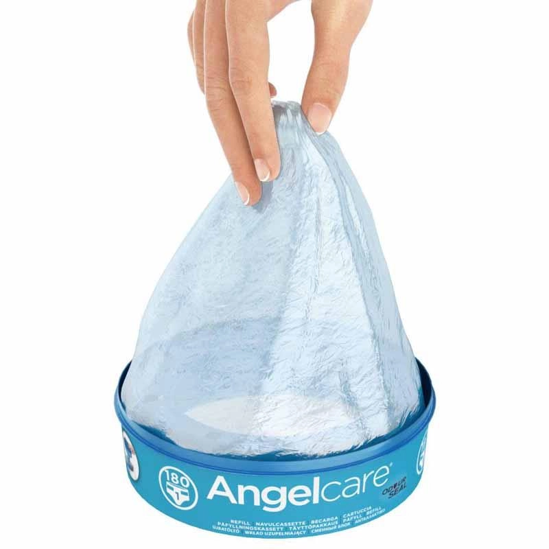 »Neskončna« vrečka se gladko odvija in omogoča hitro, higiensko namestitev v koš ANGELCARE.