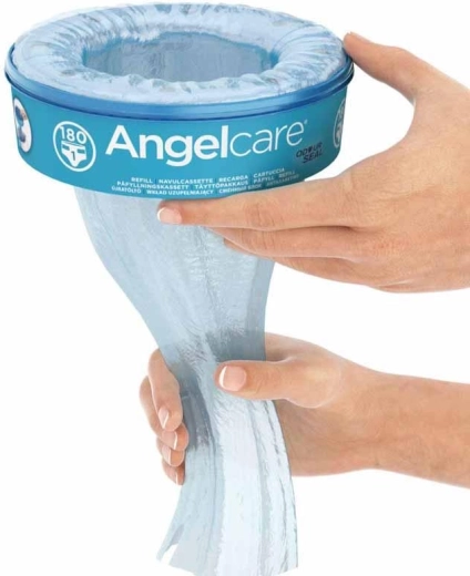Komplet kaset ANGELCARE prinaša staršem udobno in higiensko rešitev za vsakodnevno previjanje. Inovativna 7-slojna folija s tehnologijo OdourSeal ustvarja zanesljivo pregrado proti vonjavam in bakterijam, zato otroška soba ostaja sveža. Kasete se preprosto vstavijo v kompatibilne koše, z »neskončno« vrečko pa lahko uporabljene plenice odstranjujete tekoče in hitro.