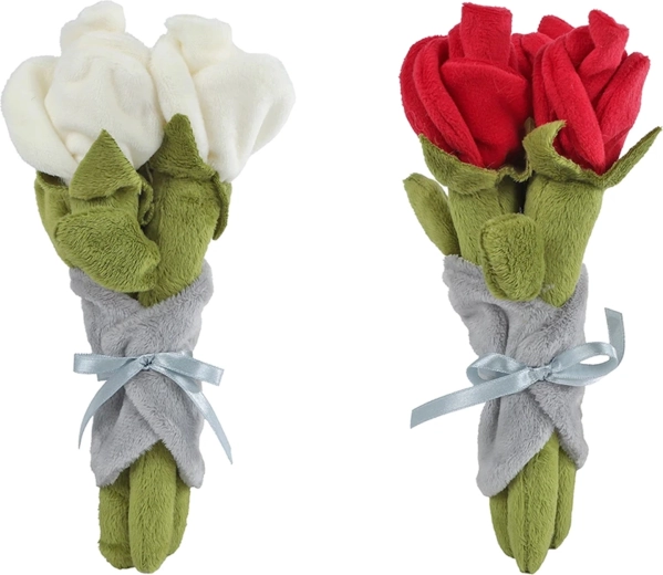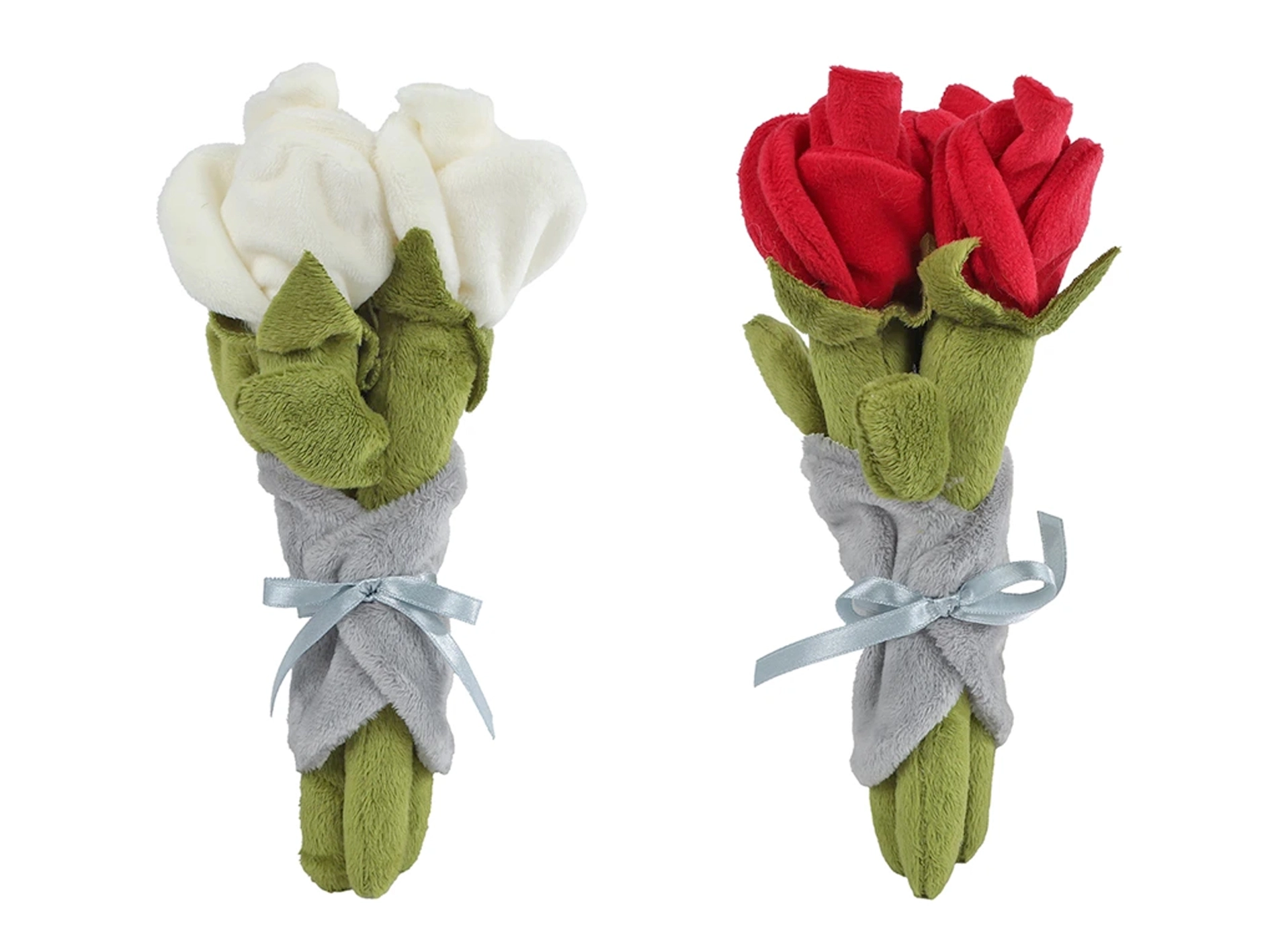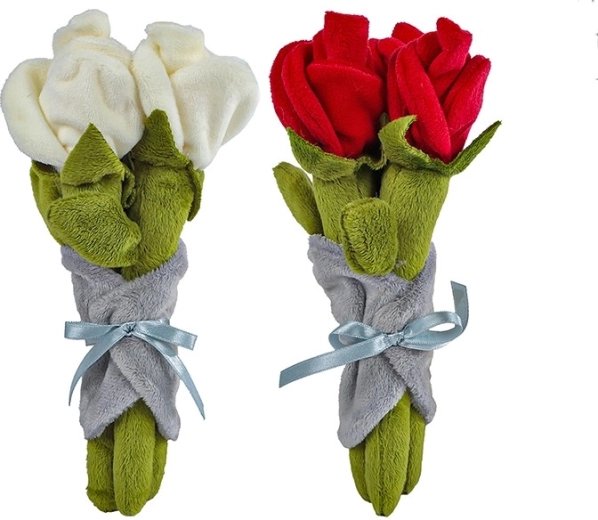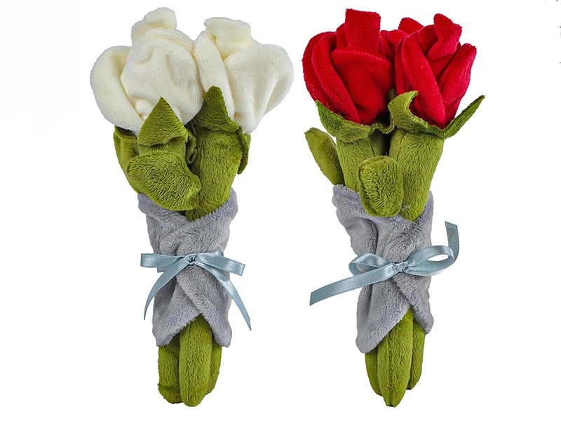 Izvirno in trajno darilo, ki nikoli ne uvene. Ta prikupen plišasti šopek vrtnic z natančno izdelanimi listi je elegantno zavit v mehek siv pliš in prevezan s satenskim trakom. Idealen je za izražanje ljubezni, prijateljstva ali kot okras v otroški sobi. Na voljo v dveh barvah – bela in rdeča. Varna izvedba je primerna za otroke od rojstva.