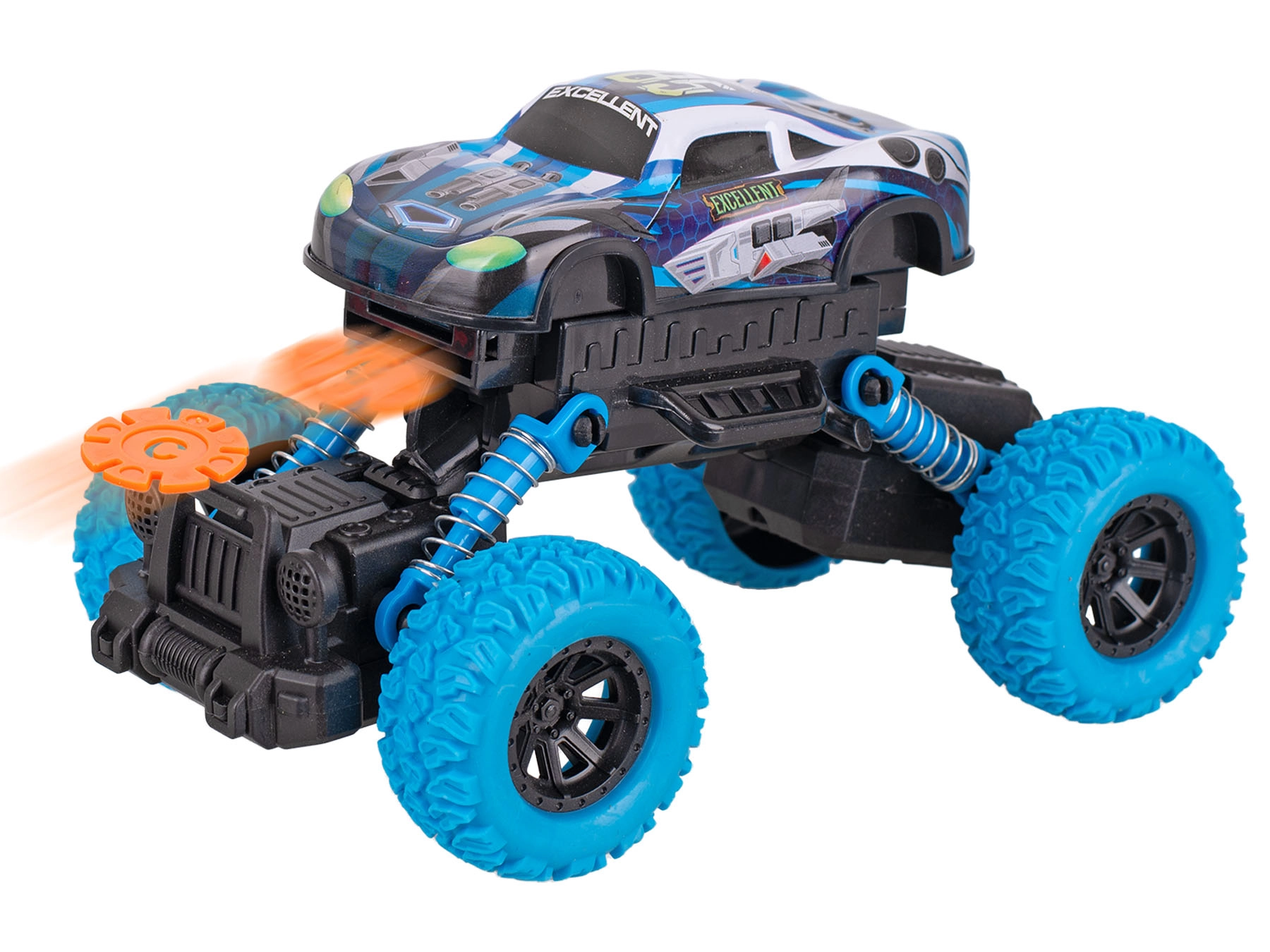 Močna zasnova, kovinska izdelava in velika kolesa naredijo Roadblasters idealno izbiro za otroke, ki imajo radi hitro in akcijsko igro. Brez potrebe po baterijah in z gladkim delovanjem zahvaljujoč vztrajniku avto zmore dolge vožnje po tleh in preprogah.