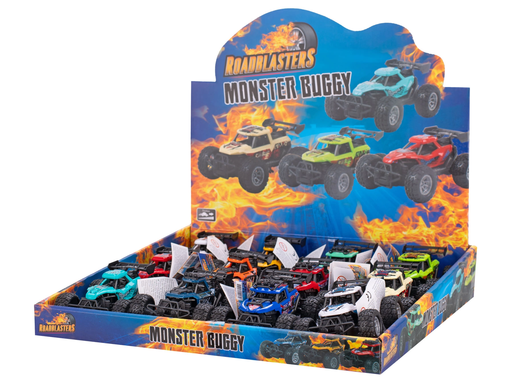 Terensko vozilo Roadblasters je idealna izbira za male pustolovce, ki imajo radi akcijo in raziskovanje. Zahvaljujoč vztrajnostnemu pogonu je dovolj, da avtomobilček potegnete nazaj in spustite – sam se požene naprej ter ponudi gladko, dinamično vožnjo. Vzdržljiva plastična konstrukcija in kompaktna dolžina 10,5 cm ga naredita odlično igračo za doma in na prostem.