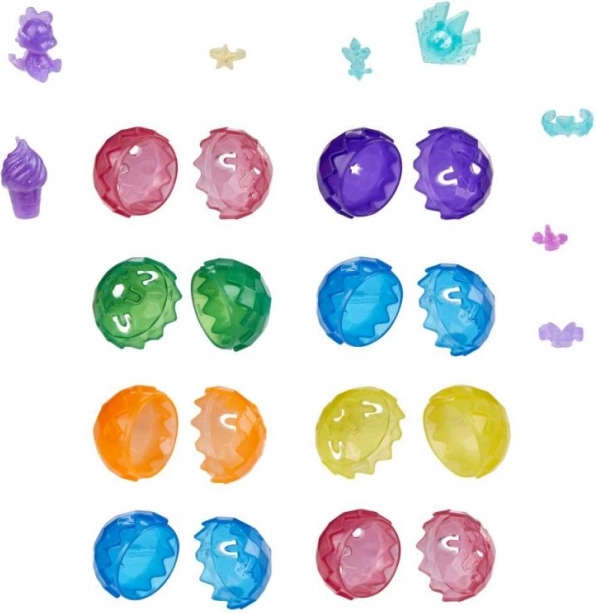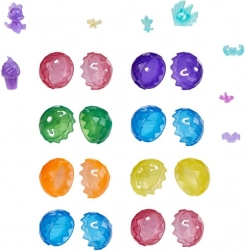 Set vsebuje barvna plastična jajca in majhne figurice, ki omogočajo interaktivno odkrivanje.