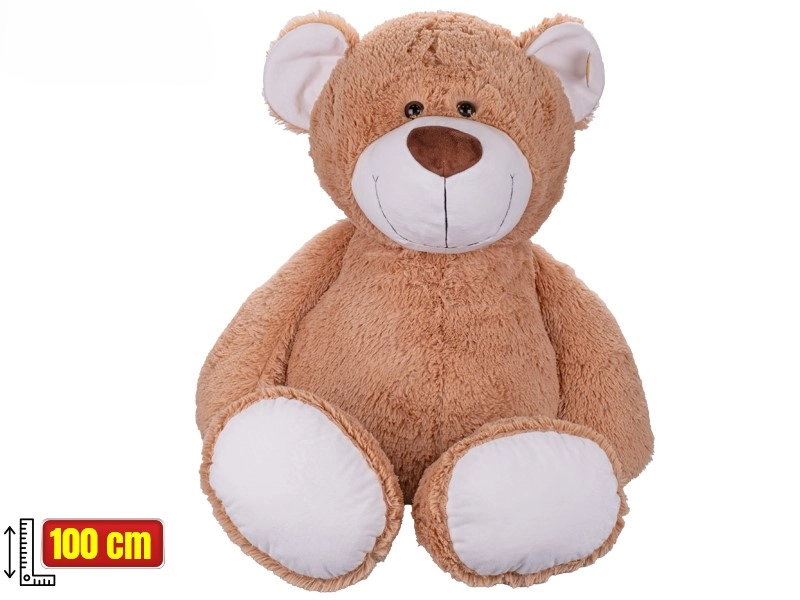 Ta ležeči plišasti medvedek dolžine 100 cm nudi maksimalno udobje in občutek varnosti. Izdelan je iz kakovostnega, mehkega pliša, ki je prijeten na dotik in odporen pri vsakodnevni uporabi. Nežen, prijazen izraz in velikodušna velikost se odlično podata v vsako otroško sobo.