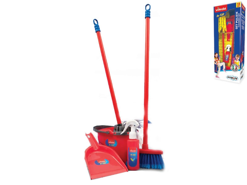 Zabaven in realističen čistilni set za otroke od 18 mesecev, navdihnjen z opremo Vileda. Vsebuje 5 osnovnih pripomočkov – vedro z ožemalnikom, mop, metlo, smetišnico in tepkalo za preproge. Lahka in trpežna plastična zasnova, prilagojena otroškim rokam, spodbuja razvoj motorike in občutek za red.