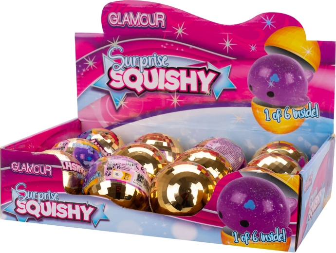 Bleščeča Glamour krogla s presenečenjem je zabavna igrača za otroke od 3 let, ki združuje veselje odkrivanja s pomirjujočim stiskanjem. V notranjosti se skriva raztegljiva in stiskalna živalica, prijetna na dotik in idealna kot antistresni pripomoček.