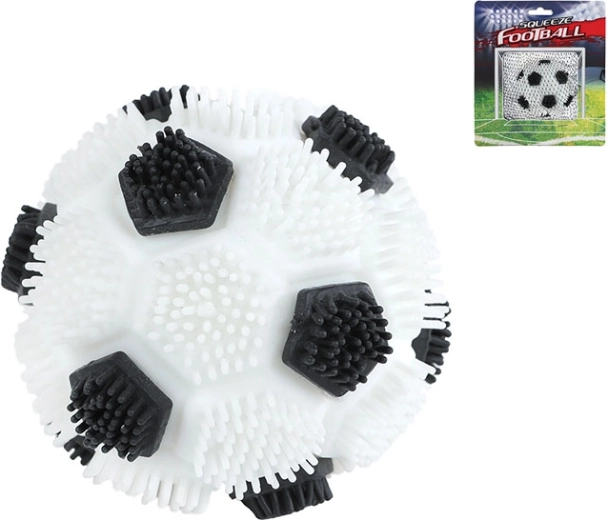 Zabavna in varna raztezna žogica s premerom 7 cm bo razveselila male športnike od 3 let. Je mehka, prožna in odlično sede v roko. Površina z mrežico ob stisku ustvari privlačen učinek, spodbuja razvoj fine motorike in koordinacijo roke in očesa. Zaradi nogometnega dizajna v črno-beli izvedbi je idealna za stiskanje, metanje in lovljenje doma, na vrtu ali na poti.