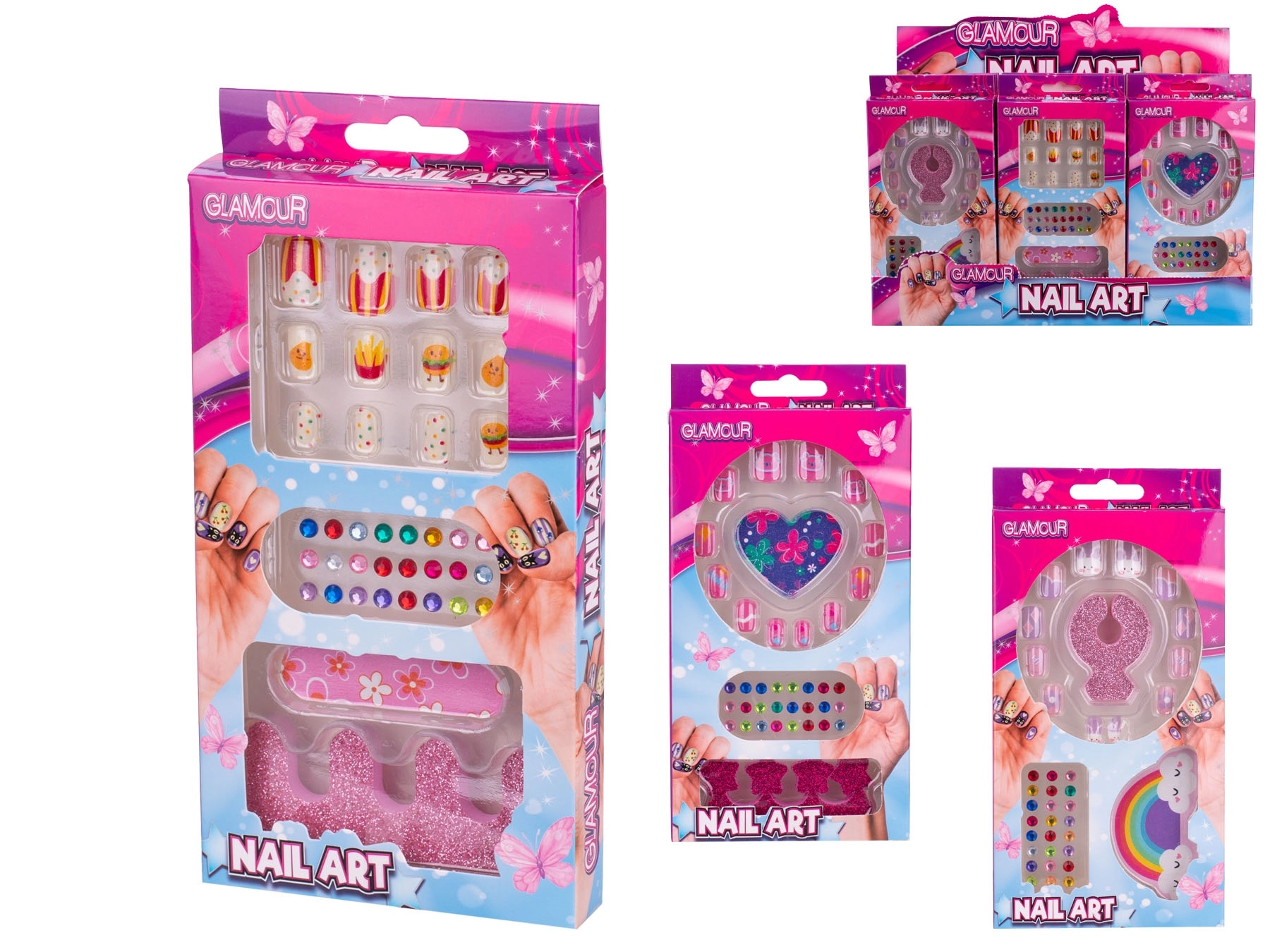 Set je na voljo v treh igrivih dizajnih – z motivi hrane, srčkov in mavrice. Zaradi enostavne uporabe brez laka lahko otroci varno preizkušajo različne sloge in razvijajo svojo domišljijo. Kompaktno pakiranje je preprosto za shranjevanje in prenašanje, zato je idealno za potovanja, obiske in otroške zabave.