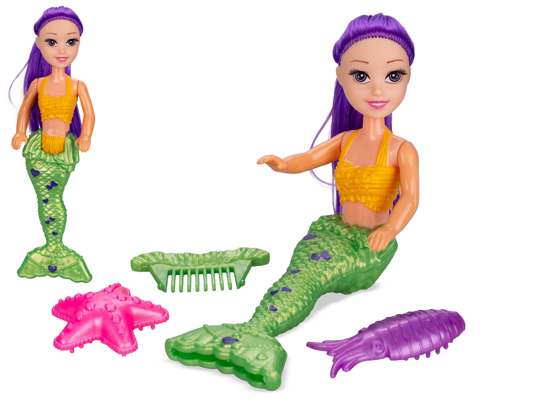 Odkrijte čarobnost podvodnih dogodivščin z lutko Morska deklica Destination Deep v velikosti 17 cm. Zaradi dolgih las, bleščečega repa in treh dodatkov spodbuja domišljijo in ustvarjalno igro. Na voljo v treh barvah (svetlo modra, zelena, rožnata), preprosto prenosna in primerna za otroke od 3 let.