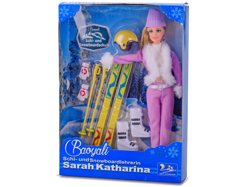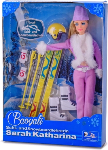 V paketu je vse potrebno za smučarsko avanturo: smuči, palice, smučarska čelada, kapa, rokavice in smučarski čevlji. Punčka je na voljo v dveh modnih barvah – rožnati in vijolični. Opozorilo: konkretne barvne različice pri naročilu ni mogoče izbrati.