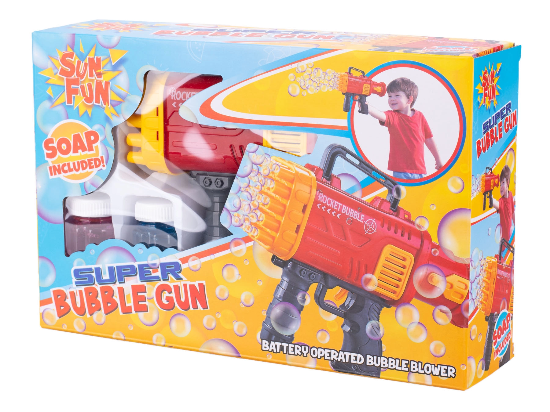 Razveselite otroke s pištolo za milne mehurčke Sun Fun, ki z enim pritiskom na sprožilec ustvari množico mehurčkov. Zahvaljujoč enostavnemu upravljanju, udobnemu oprijemu in privlačni zasnovi je idealna za igre na prostem, zabave in poletno razvedrilo. Dovolj je vstaviti baterije (niso priložene), priključiti vložek in zabava se začne.