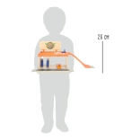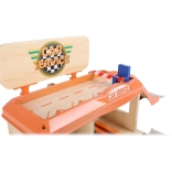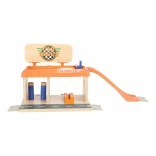 Ta lesena igrača je idealna za male avtomobilske navdušence. Avtoservis in bencinska črpalka prinašata zabavo na dveh nadstropjih in ponujata še več prostora za raziskovanje. Otroci bodo vzljubili realistične oblikovne elemente, vključno z rampo in parkiriščem, zavarovanim z zapornico.