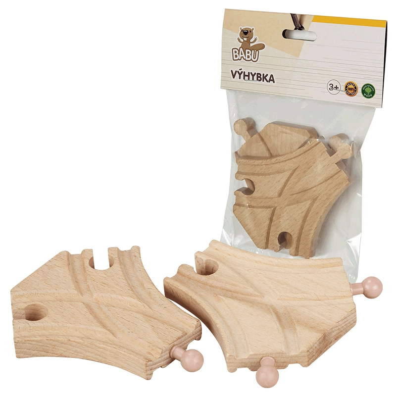 Set BABU razcep vam omogoča enostavno spreminjanje smeri vožnje in ustvarjanje novih kombinacij prog. Lesena izvedba je trpežna, okolju prijazna in varna za vsakodnevno igro. Zahvaljujoč kompaktni dolžini 9,5 cm se odlično prilega večini lesenih železnic.