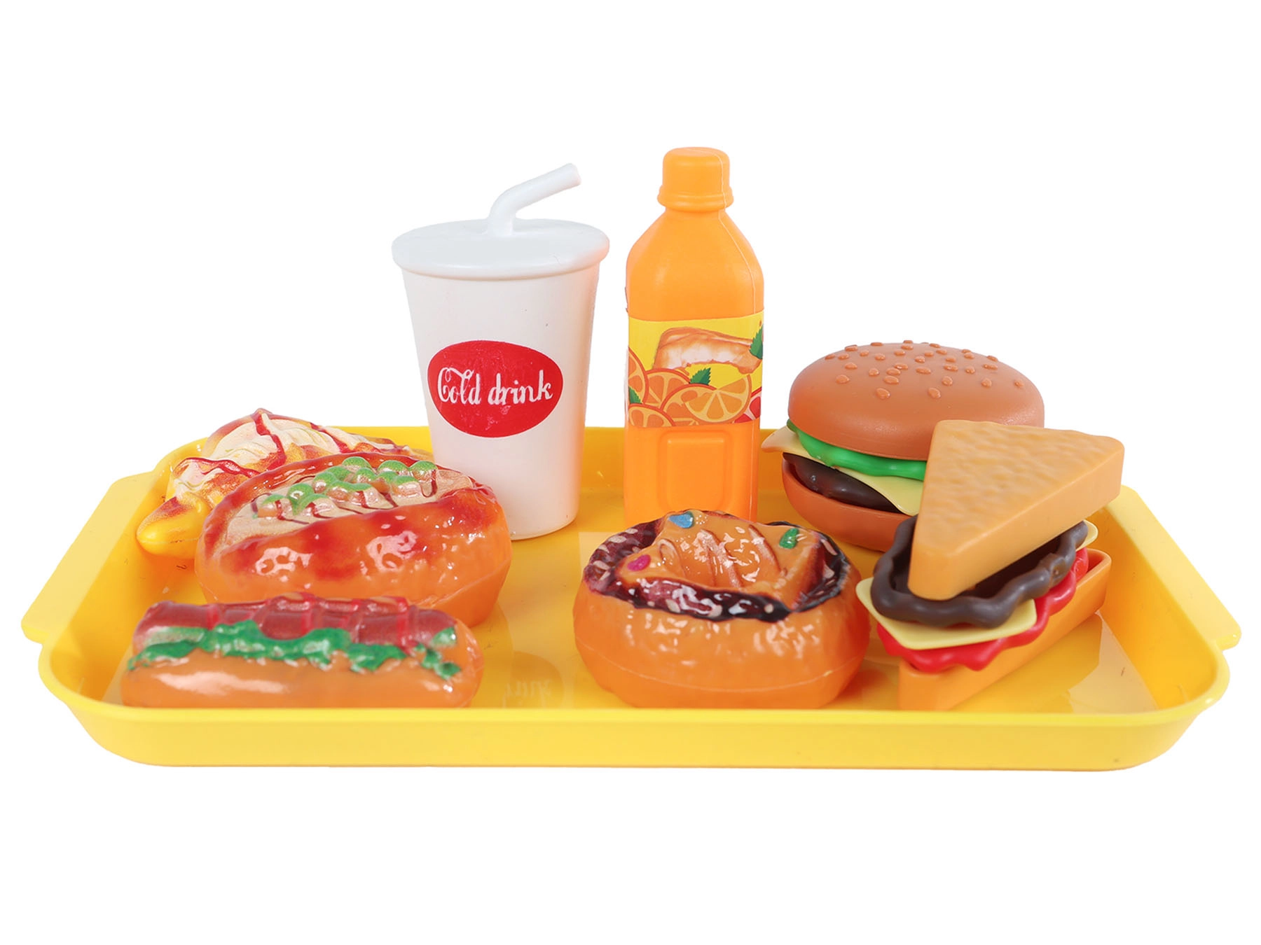 Ta igralni komplet hitre prehrane je idealna izbira za otroke od 3 let, ki imajo radi igre kuhanja in strežbe v restavraciji. Trpežna plastika zagotavlja varno in dolgotrajno uporabo, medtem ko pisana ponudba jedi spodbuja kreativne zgodbe in učenje o različnih vrstah hrane.