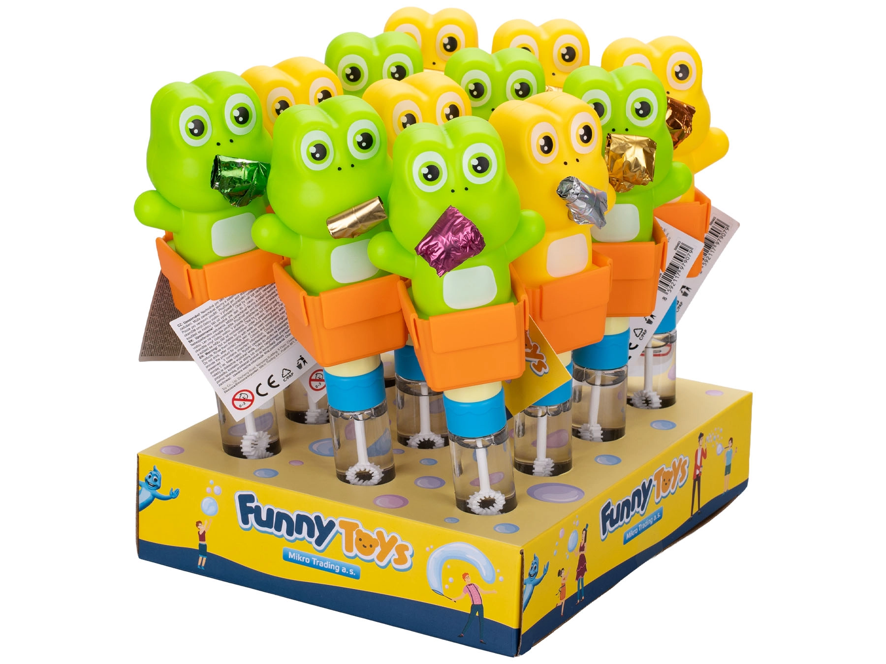 Zabavna igrača za otroke od 3. leta, ki združuje klasični mehurčkator in party trobentico za dvojni odmerek zabave. Vesela žabica ustvarja veliko mehurčkov, oddaja značilne zvoke trobentice in je idealna za otroška praznovanja in zabave. Na voljo v dveh barvah in izdelana iz odporne plastike za varno in udobno igro.