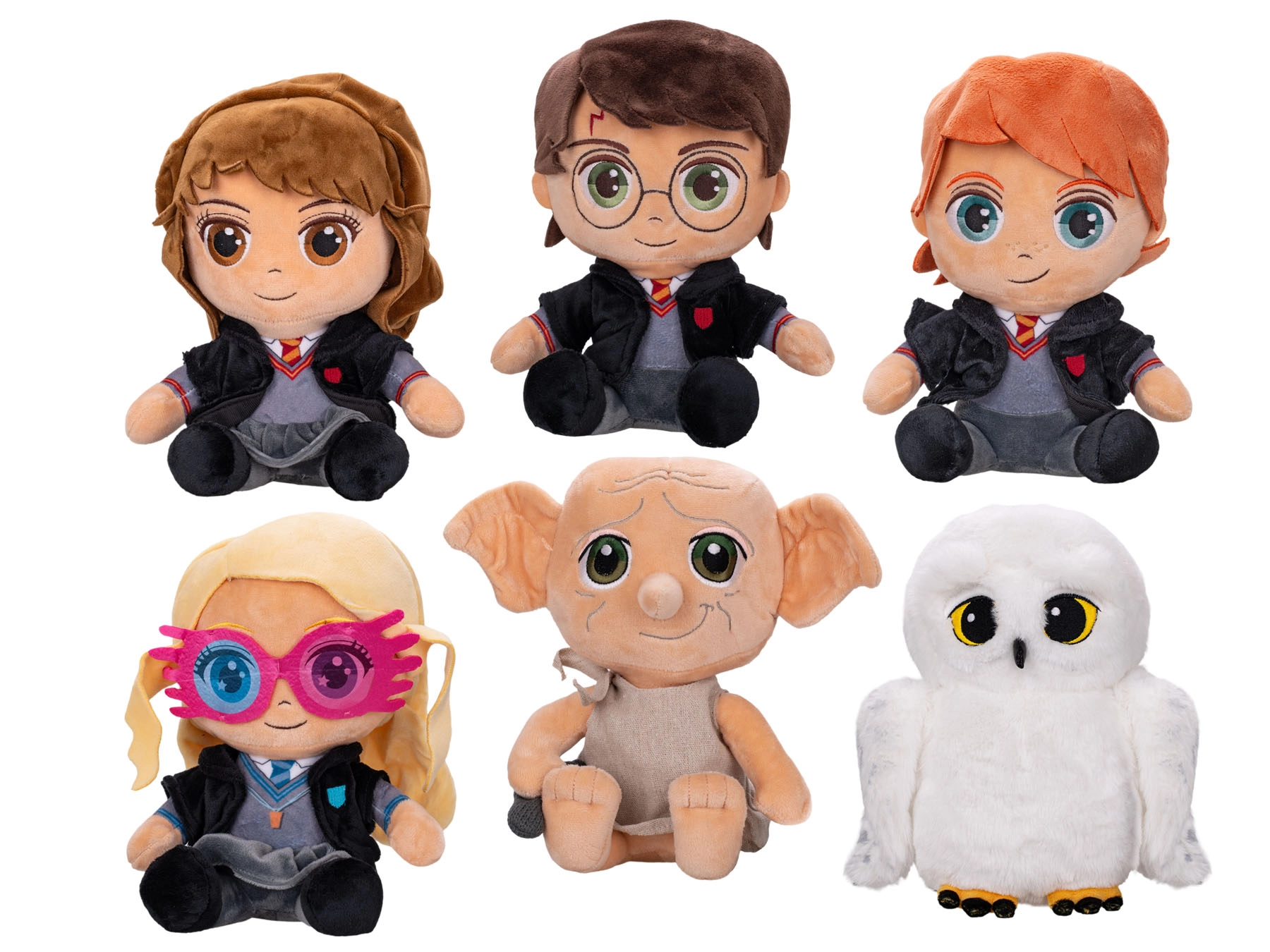 Odkrijte čarovnijo sveta HARRY POTTER z ljubko kolekcijo sedečih plišastih igrač velikosti 25 cm. Vsaka figurica je izdelana iz mehkega pliša, ki je prijeten na dotik in varen za otroke od rojstva. Na voljo so priljubljeni liki: Harry Potter, Hermiona Granger, Ron Weasley, Luna Lovegood, Dobby in sova Hedwig – popolno darilo za male in velike oboževalce Bradavičarke.