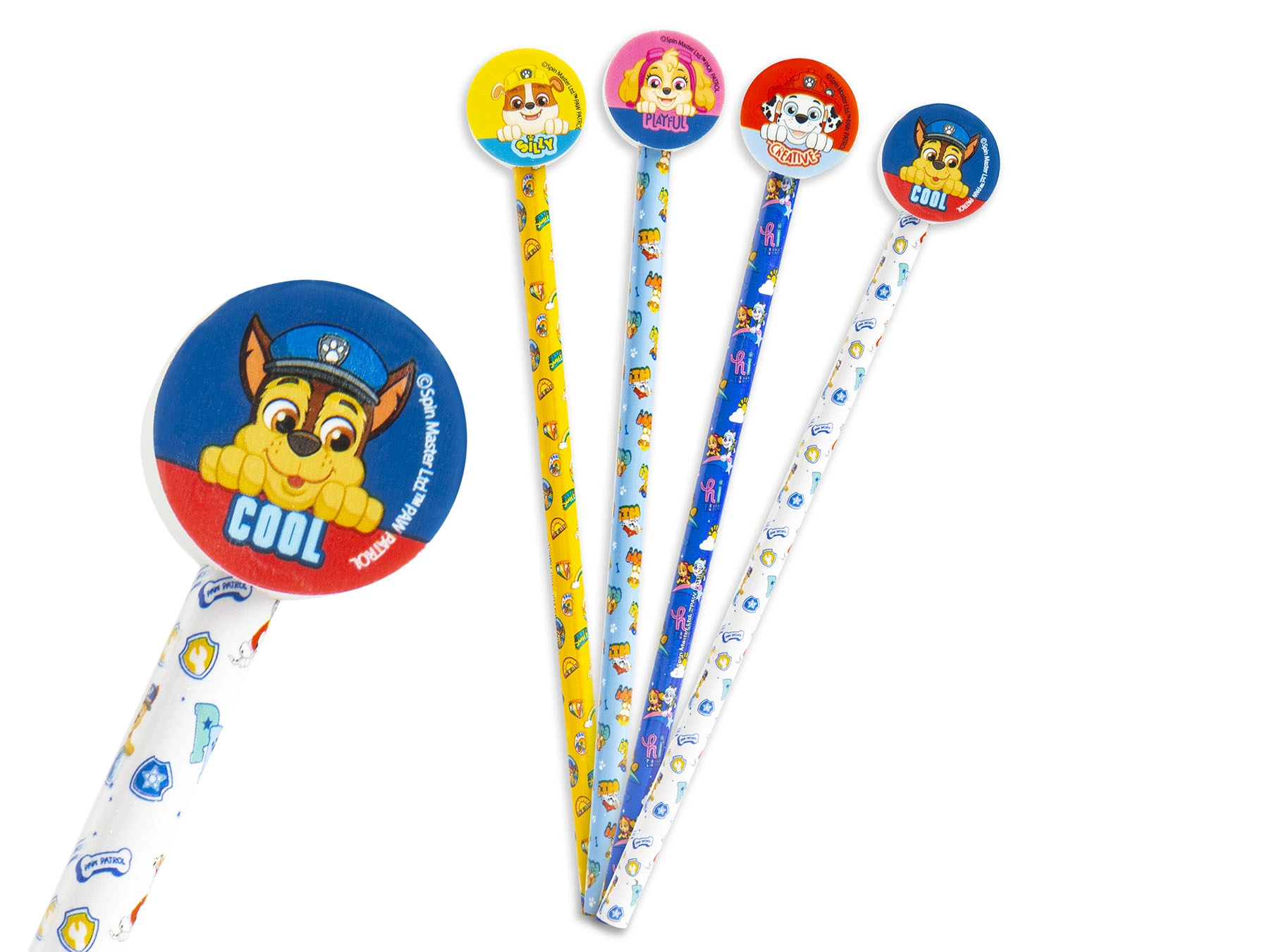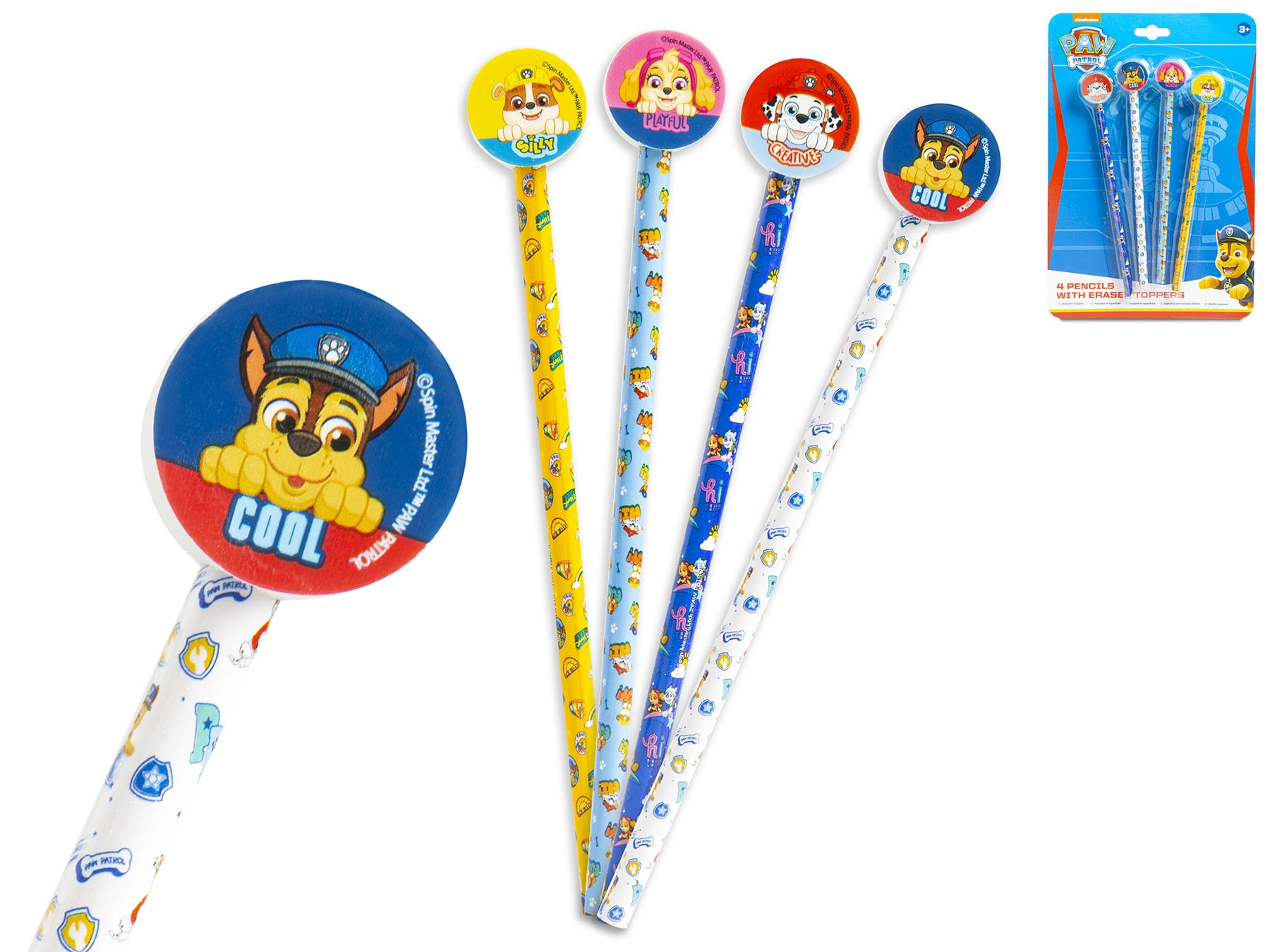 Odkrijte praktičen in zabaven komplet štirih svinčnikov z radirko z motivom PAW PATROL, idealen za mlajše šolarje in ustvarjalne otroke. Svinčniki iz kakovostnega lesa s trdoto HB so odlični za pisanje in risanje, medtem ko vgrajena radirka omogoča hitre popravke napak. Veseli motivi priljubljenih junakov popestrijo vsakodnevne šolske in domače naloge.