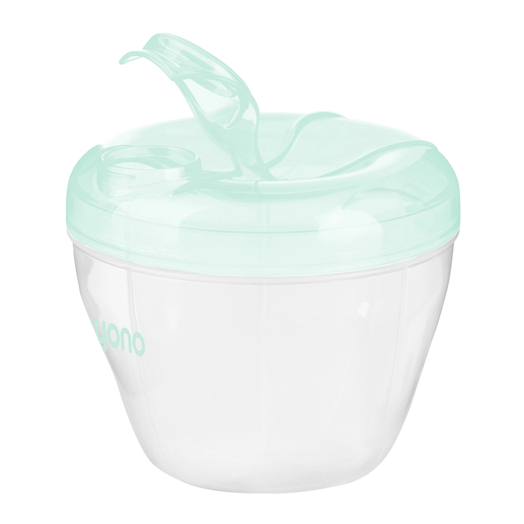 Ohranite odmerke suhega mleka pripravljene za vsak obrok. Ta kompaktni dozirnik z več oddelki vam omogoča, da odmerke pripravite vnaprej, nato pa le odprete preklopno vrat in nasujete – hitro, čisto in brez stresa, kjerkoli ste.