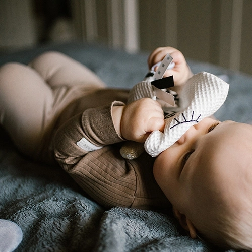 Zaradi skrbno izbranih materialov je igrača prijetna do občutljive otroške kože. Zvočni učinek ob stisku pomaga razvijati koordinacijo roka–oko ter uči otroka vzroka in posledice. Raznolike strukture, ušeska in všitki zagotavljajo bogato taktilno stimulacijo, ki podpira kognitivni razvoj.