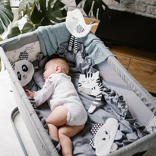Črno-beli elementi pritegnejo pozornost novorojenčkov in pomagajo pri osredotočanju v ključnem obdobju prvih mesecev.