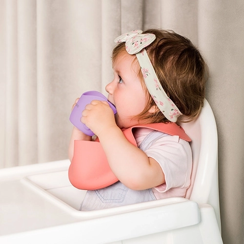 Vadbeni lonček BabyOno je zasnovan v skladu z anatomskimi in motoričnimi sposobnostmi malčkov. Podpira naraven način pitja iz odprte posode, zato je idealen prehod od stekleničke ali netekočega lončka. Nagnjen rob ter široki, ergonomski ročaji omogočajo otroku prilagoditev kota in tempa pitja, kar zmanjšuje tveganje razlitja in podpira pravilen gib čeljusti.