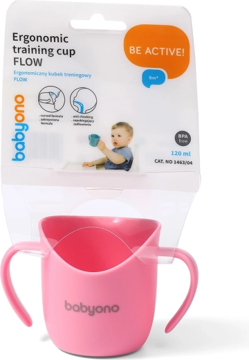Praktičen vadbeni lonček BabyOno pomaga otrokom od 6 mesecev, da se samostojno in varno učijo piti iz odprte posode. Zahvaljujoč ergonomski obliki, dvojnim ročajem za zanesljiv oprijem in nagnjenemu robu otrok lažje nadzoruje pretok tekočine in tempo pitja. Izdelan je iz varnega materiala brez BPA, je lahek, vzdržljiv in primeren za pomivanje v pomivalnem stroju.
