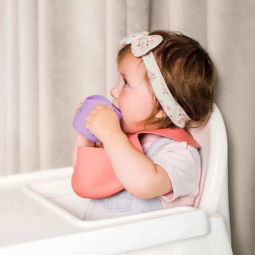 Dva ergonomska ročaja zagotavljata stabilen prijem tudi za majhne ročice in spodbujata samostojnost pri pitju.
