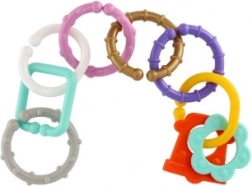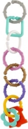 Ta komplet barvitih obročkov in oblik je zasnovan za najmlajše. Z različnimi barvami, oblikami in teksturami otroci naravno razvijajo senzorično zaznavanje in koordinacijo roka–oko. Posamezni deli se enostavno povezujejo in trdno držijo, zato si lahko otroci ustvarijo lastne verižice ali pripnejo igračke na voziček ali avtosedež.
