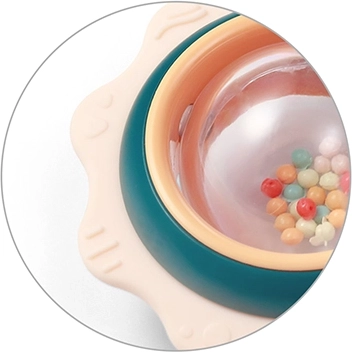 Prozorna kupola z barvnimi kroglicami ob gibanju oddaja prijetne zvoke, ki spodbujajo zaznavanje in radovednost dojenčka.