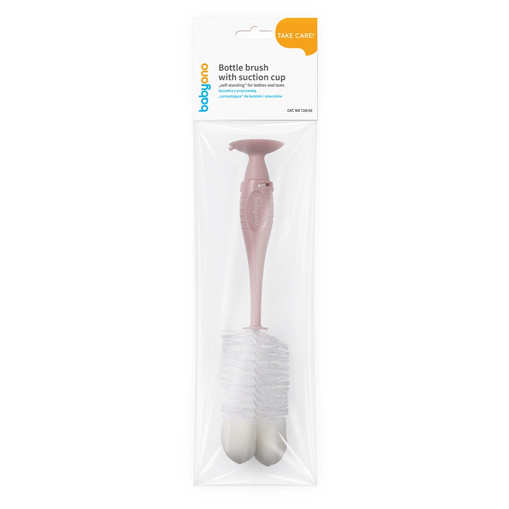 Ohranjajte otroške stekleničke in cuclje popolnoma čiste s krtačo BABYONO s praktičnim priseskom. Zahvaljujoč gobasti konici zlahka dosežete tudi dno stekleničk in nežno odstranite nečistoče brez prask. V ročaj vgrajeni mini čopič je vedno pri roki za natančno čiščenje cucljev.