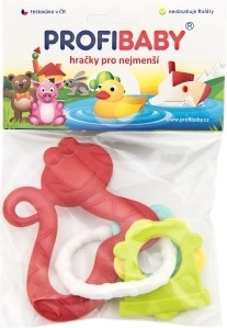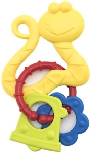 Raznolike površine in obročki nežno masirajo dlesni ter hkrati zabavajo z zvokom ropotuljice.