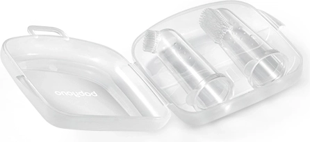 Izdelano iz 100 % silikona brez BPA, ščetki sta varni, trpežni in enostavni za čiščenje. Ergonomska prstna oblika zagotavlja zanesljiv oprijem in natančno čiščenje. Popoln pomočnik v obdobju izraščanja zobkov in pri uvajanju redne ustne higiene.
