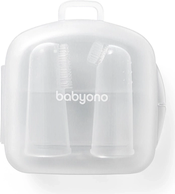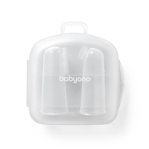 Vzdržujte ustno higieno dojenčka od prvih dni s praktičnim setom BABYONO. Dve različni prstni ščetki iz mehkega silikona nežno skrbita za dlesni in prve zobke – ena za masažo ob izraščanju, druga za nežno čiščenje. Priloženo je higiensko potovalno etui. Brez BPA, enostavno čiščenje, primerno od 0m+.