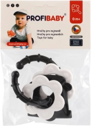 Grizala za dojenčke – črno‑beli liki, ropotuljica in držalo