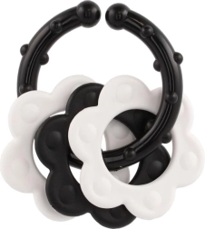 Praktična črno‑bela grizala v 4 oblikah z vgrajeno ropotuljico in udobnim držalom podpirajo razvoj vida in fine motorike že od rojstva. Izdelana iz zdravju neškodljivih materialov, varnih za vsakodnevno uporabo.