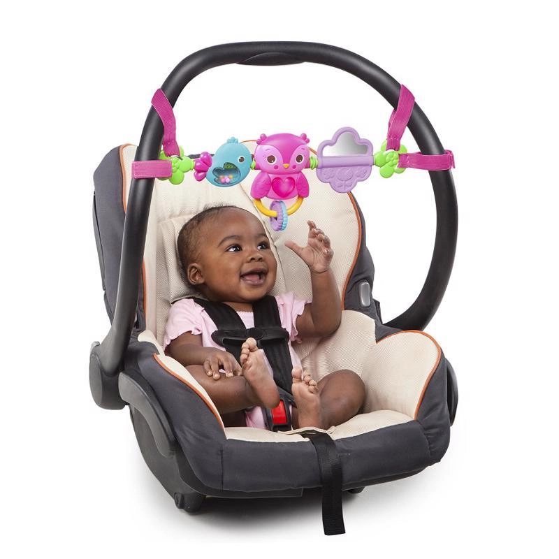 Prisrčna viseča igrača PiP Busy Birdies znamke BRIGHT STARTS spremeni vsako potovanje v zabavo. Ponuja svetlečo sovico s 4 melodijami, ropotuljico v obliki ptička, varnostno ogledalce in preproste pritrdilne trakove. Primerno od rojstva – za vizualno stimulacijo, razvoj prijema in pomiritev na poti.