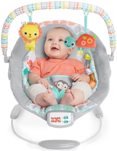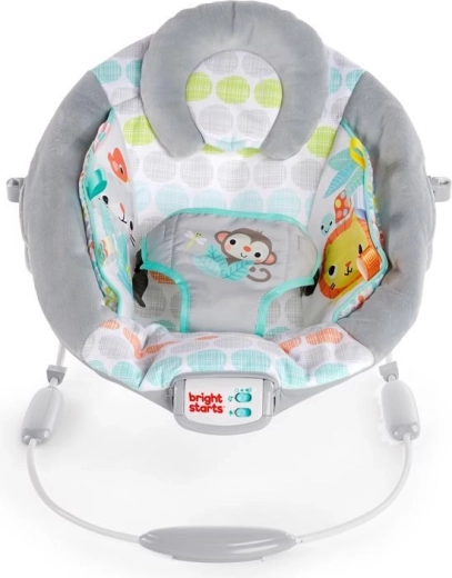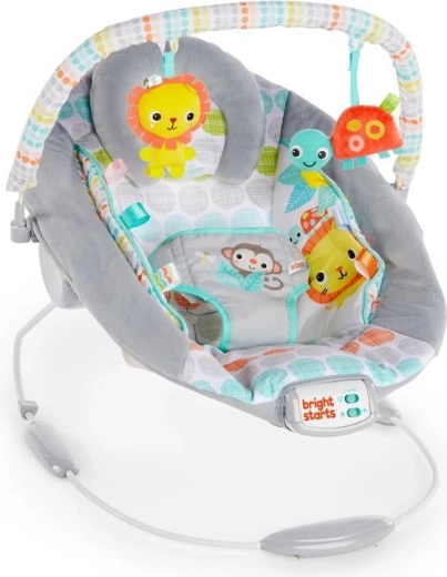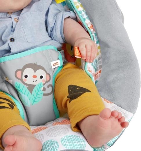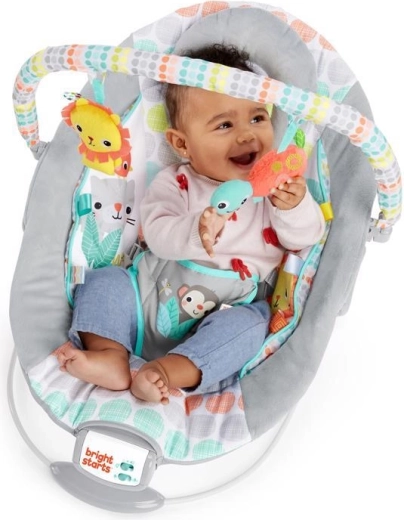 Ležalnik Bright Starts Whimsical Wild je zasnovan za vsakodnevno udobje in zabavo. Mehko oblazinjenje, odstranljiv naslon za glavo in integriran vložek za novorojenčka zagotavljajo dojenčku pravilno oporo. Pomirjujoče vibracije in 7 melodij z nastavljivo glasnostjo pomagajo umiriti in uspavati, medtem ko 15‑minutni časovnik varčuje z baterijami.