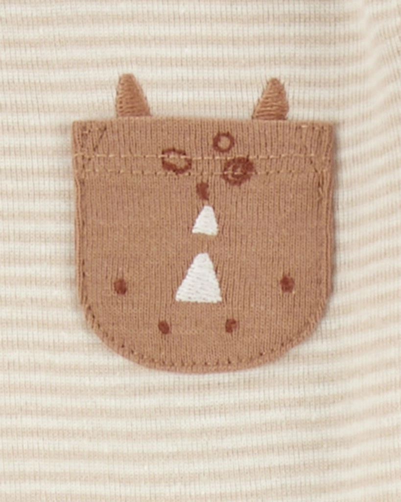 Praktičen preklopni izrez in pritiskači brez niklja med nogicami pospešijo preoblačenje in previjanje. Komplet je dobavljen na obešalniku, zato je pripravljen za takojšnjo uporabo ali kot darilo za nove starše.
