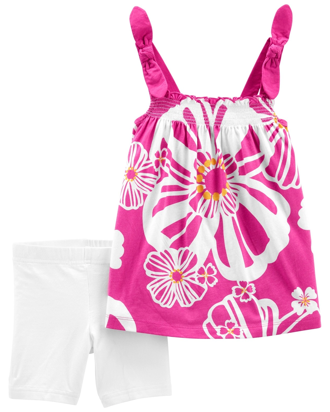 Ljubek dekliški poletni komplet vključuje tuniko brez rokavov in kratke legice iz prijetno mehnega bombaža. Ponuja udobno nošenje, svobodnejši kroj in trendovski cvetlični dizajn v vijoličnih odtenkih. Idealno za tople poletne dni zahvaljujoč lahkim materialom in udobnemu elastičnemu pasu.