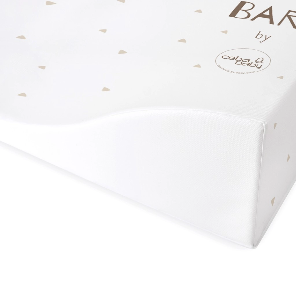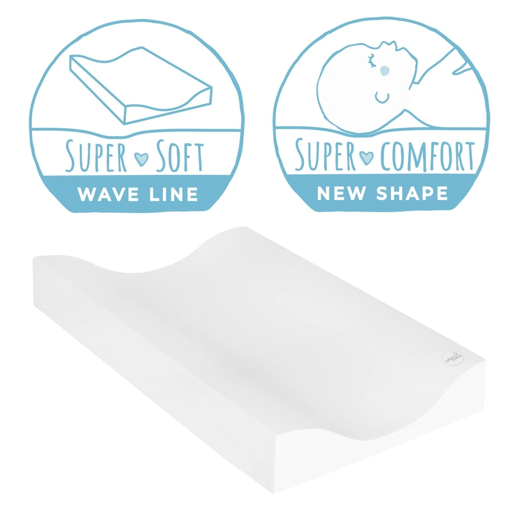 Ta previjalna podloga združuje mehko oblazinjenje za največje udobje dojenčka in varno, certificirano PVC, ki je trpežno, higiensko in prijazno do občutljive otroške kože. Dva povišana roba pomagata ohranjati otroka na sredini podloge in prispevata k varnejšemu previjanju.