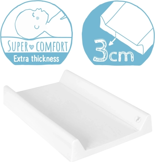 Previjalna podloga Ceba Baby Comfort je zasnovana za vsakodnevno nego novorojenčkov in dojenčkov. Dva stranska roba povečujeta občutek varnosti, trda plošča zagotavlja stabilnost na posteljici, mehko polnilo z debelino do 3 cm pa dojenčku nudi resnično udobje. Površinska folija je atestirana, ne vsebuje ftalatov in je prijazna do otroške kože.