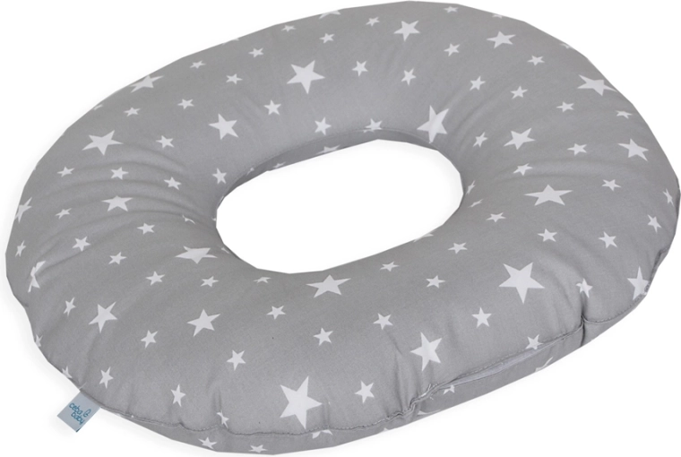 Poporodni obroč CEBA BABY Milky Way je zasnovan tako, da zmanjša pritisk na presredek in šive po naravnem porodu. Zahvaljujoč obročasti obliki z izrezom na sredini omogoča udobno sedenje, podpira pravilno držo telesa in pospešuje hitrejše okrevanje. Nežen bombažen prevlek z vzorcem zvezdic je prijeten na dotik in enostaven za vzdrževanje.