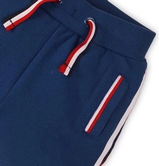 Kontrastne bočne črte in obroba žepov zagotavljajo moden in svež videz, primeren za igrišče in prosti čas.