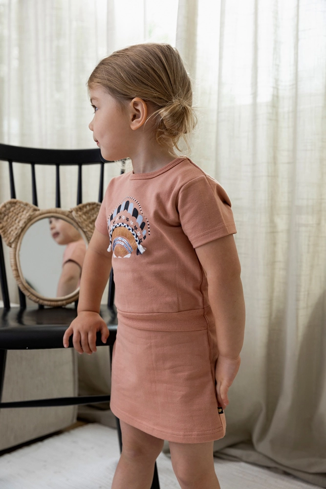 Stajliš dekliška obleka DIRKJE v elegantnem staroružnatem odtenku bo navdušila vsako malo damo. Ponuja udoben kroj, kakovostno šivanje in prijeten material z dodatkom elastana za boljšo prožnost. Idealna za vsak dan in slavnostne priložnosti, s trendy dizajnom in možnostjo pranja v pralnem stroju.