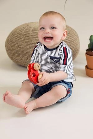 Prijeten plet z visokim deležem bombaža je nežen do otroške kože in omogoča celodnevno udobje.