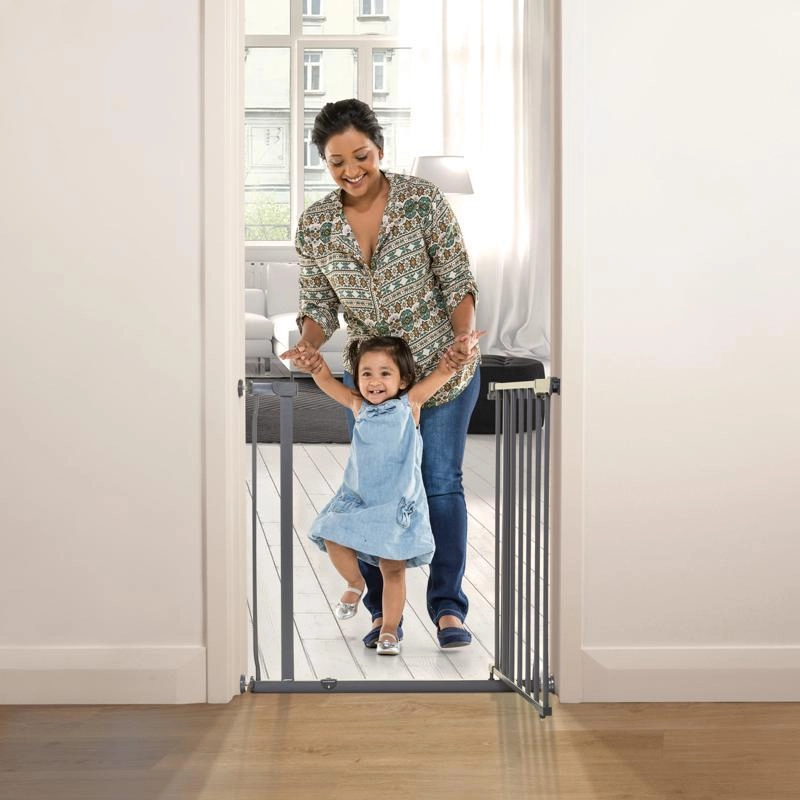 Varnostna ograja Dreambaby Ava je zanesljiva rešitev za ločevanje prostorov v gospodinjstvu. Tlačni pritrdilni sistem omogoča hitro montažo brez vrtanja, medtem ko se robustna kovinska izvedba v elegantni sivi barvi lepo poda k modernim interierjem. Odpiranje z eno roko in dvosmerno odpiranje olajšata prehod odraslim, hkrati pa ograja ostane varno zaklenjena za otroke do 24 mesecev.